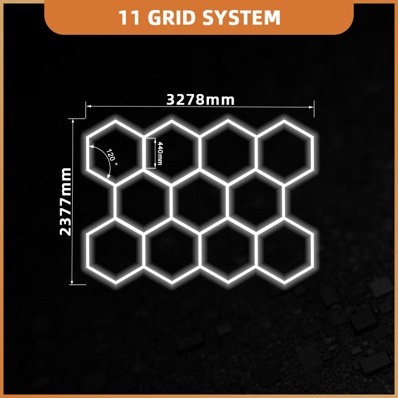 Meie Hexagon 11 valgustussüsteem sisaldab garaaži LED-valgusteid, mis on väga modulaarse disainiga. Tänu sellele saab süsteemi kohandada erinevate paigutuste ja valgustusvajaduste järgi, luues ideaalse valguskeskkonna sinu garaažile.